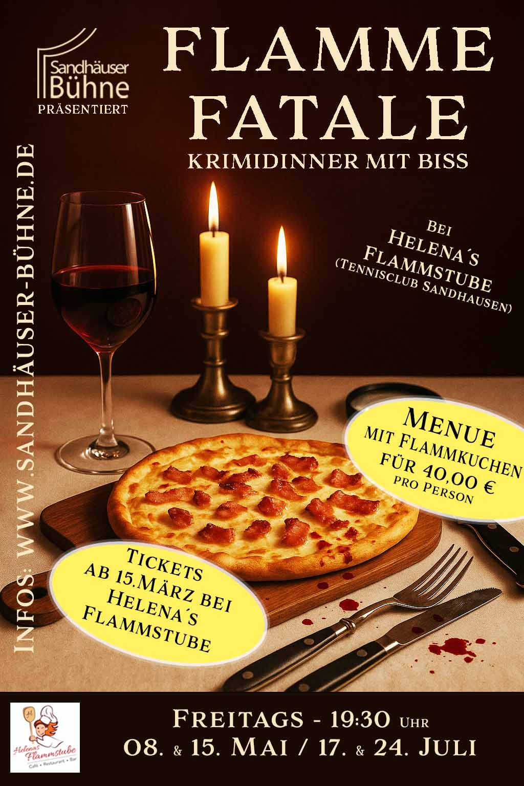 Im Mai und Juli laden wir zusammen mit Helena´s Flammstube zum Krimidinner ein.